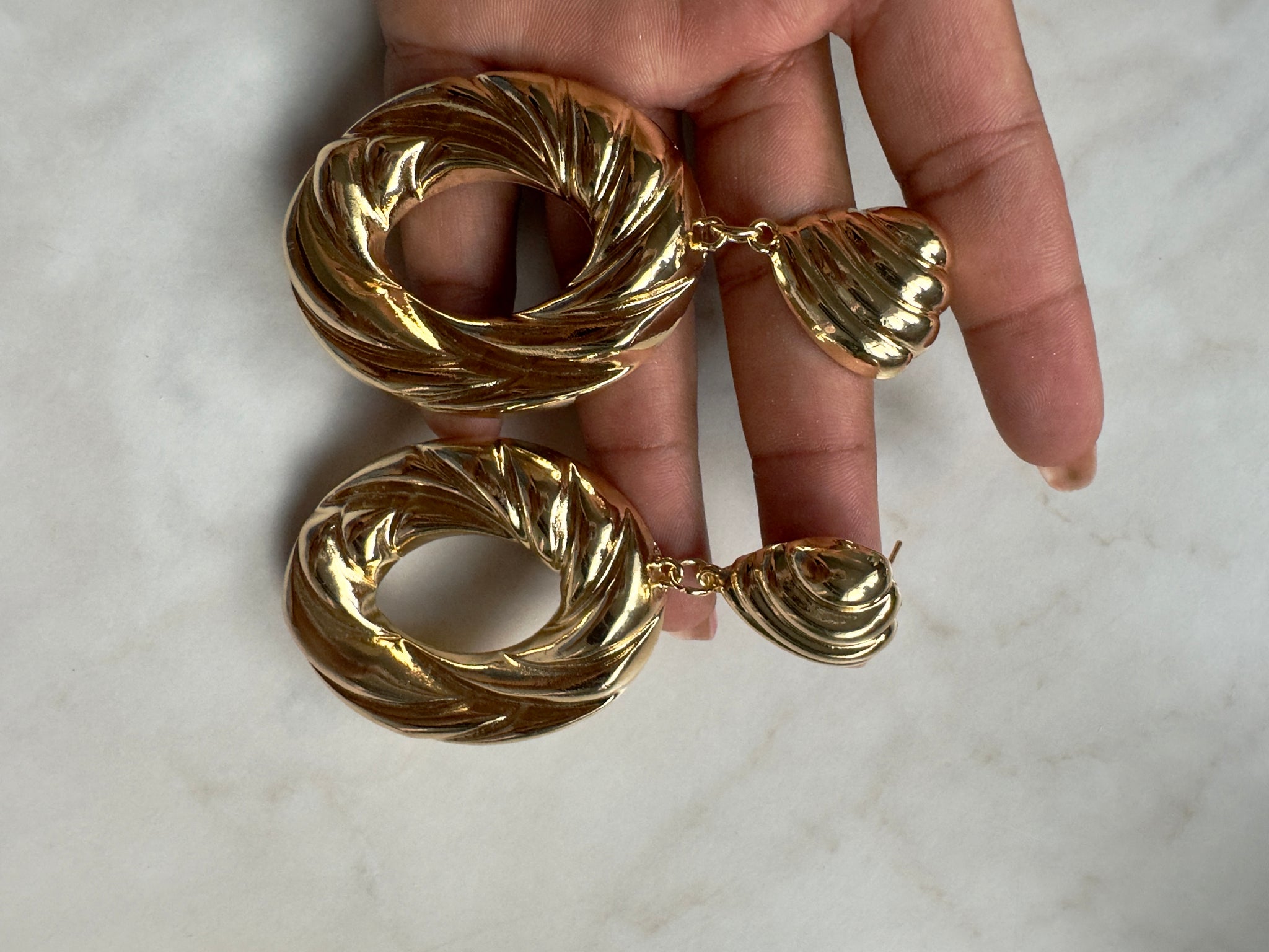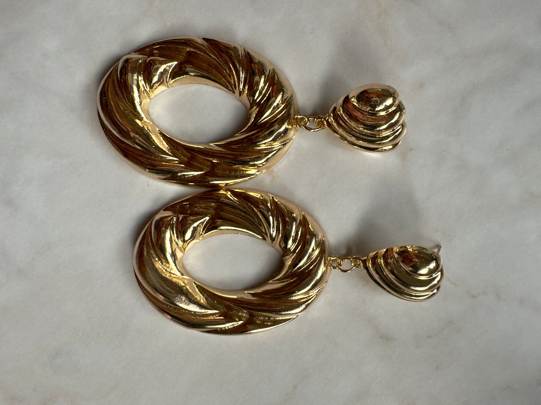 Accessories: Gold-Plated Sculptural Drop Hoop Earrings - Thrift Happens 2