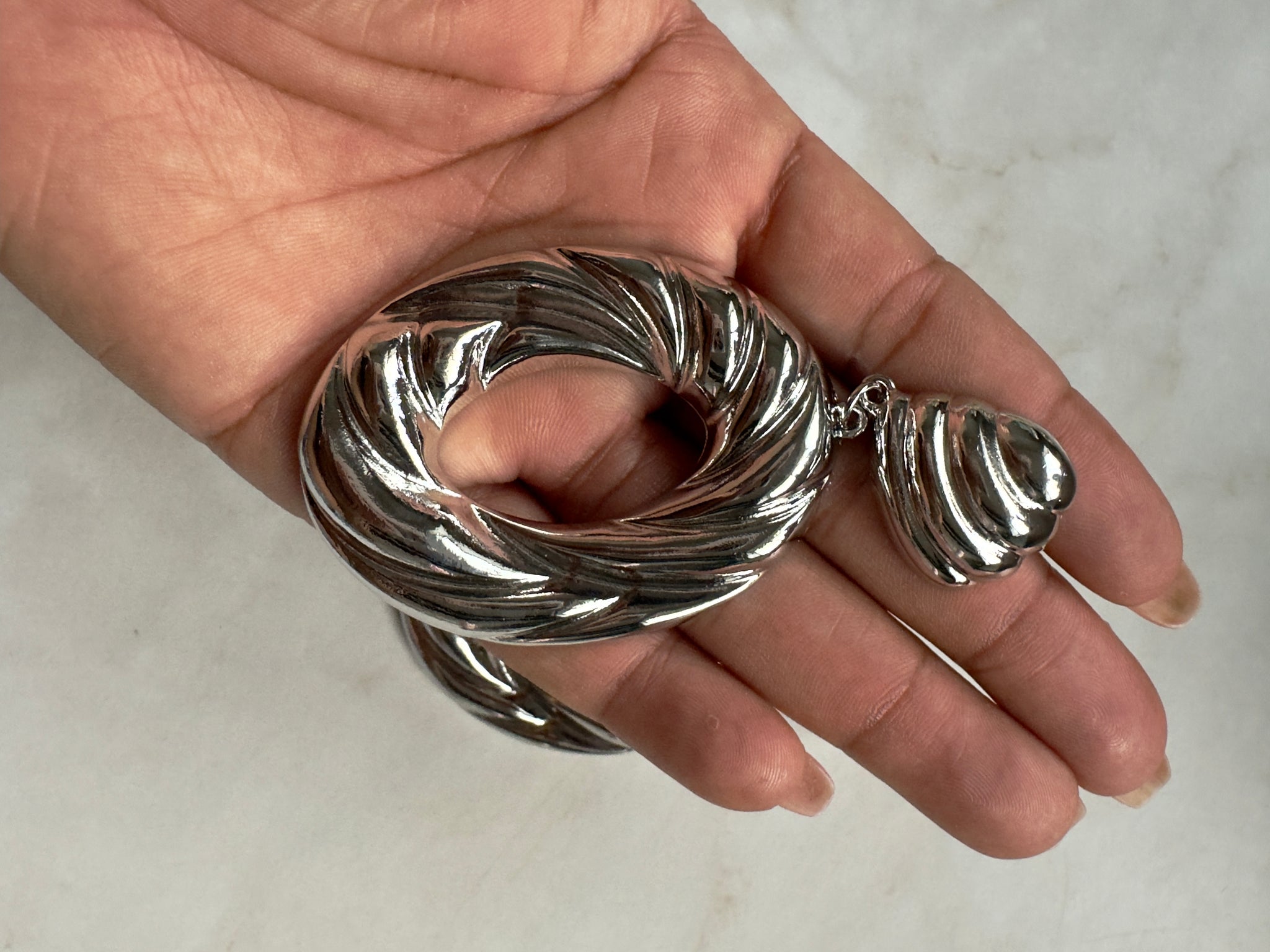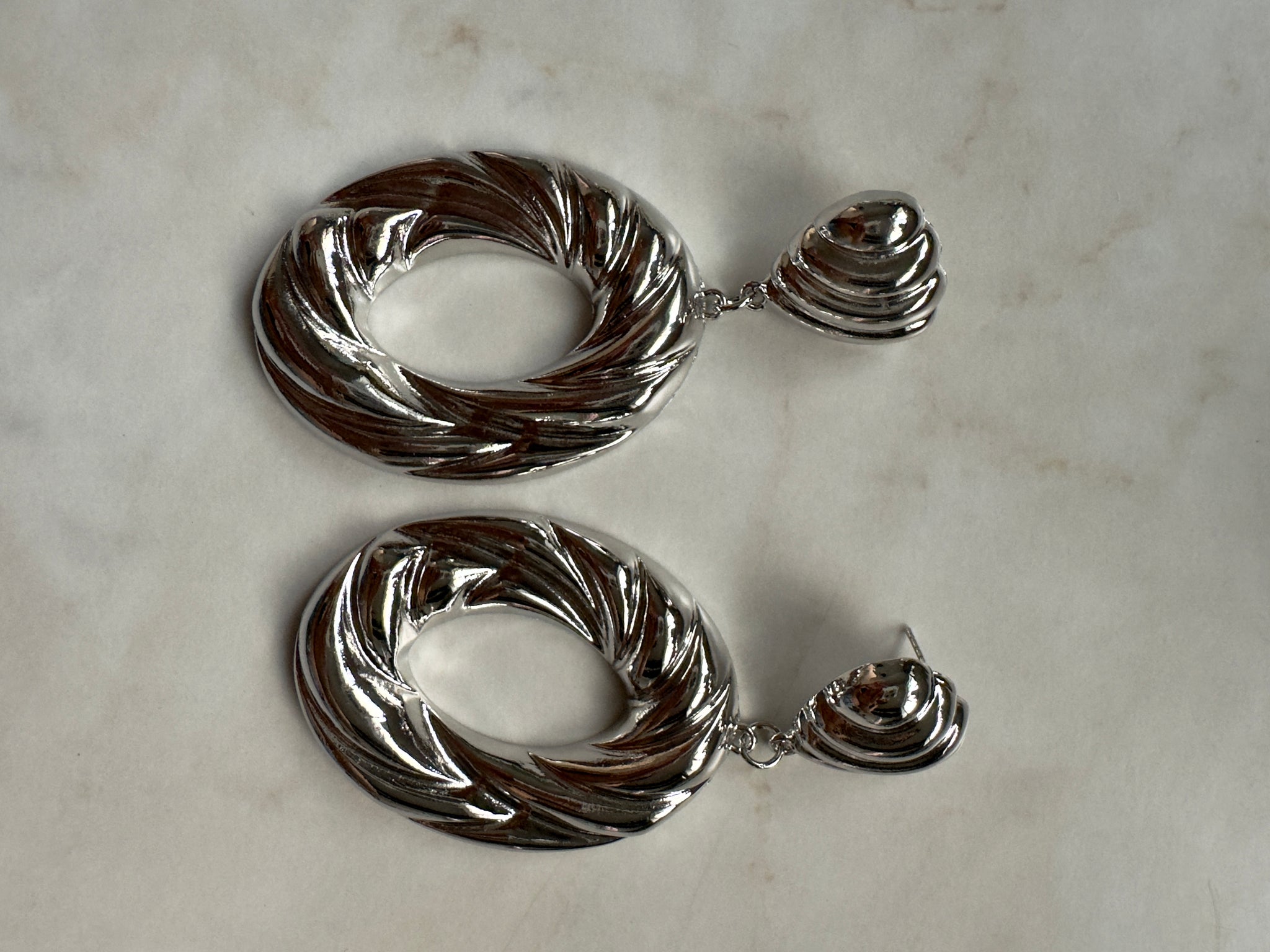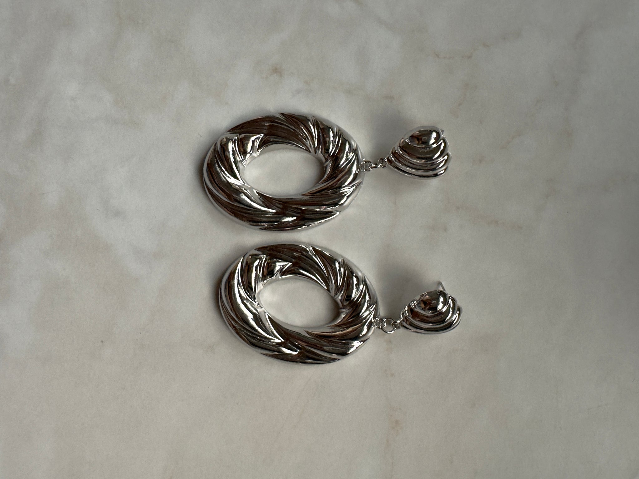 Accessories: Silver-Plated Sculptural Drop Hoop Earrings - Thrift Happens 2