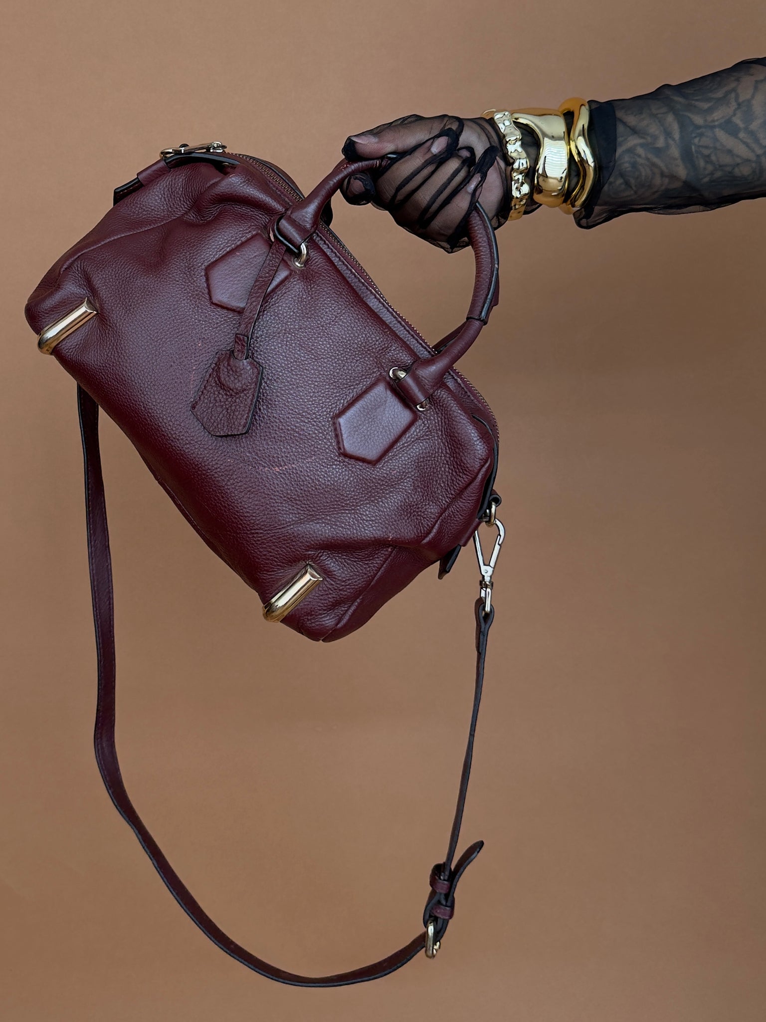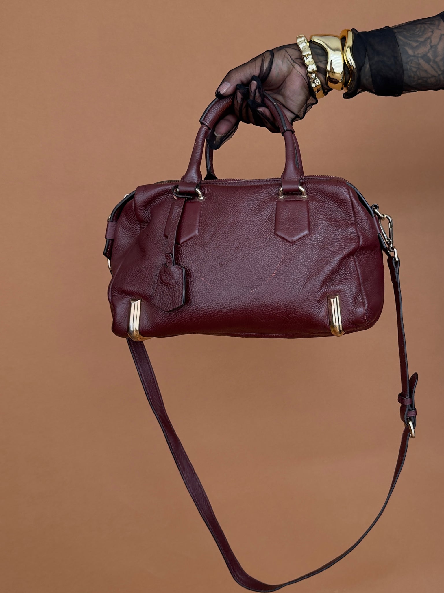 Burgundy Pebbled Leather Mini Duffel Bag